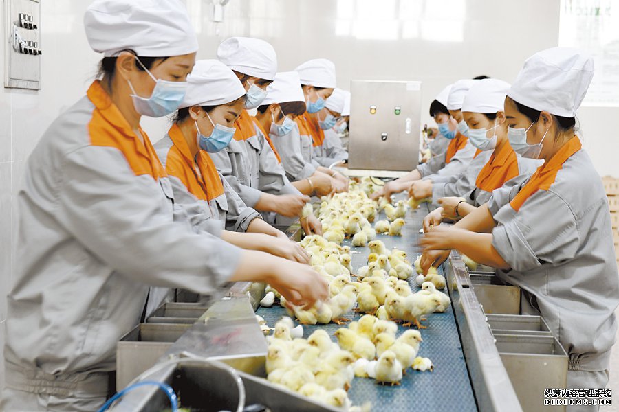 在位于行唐县的峪口禽业“小优鸡”扶贫项目孵化厅内,工作人员正在进行雏鸡孵化工作。该项目采用自动化养殖、智能化管理,实行孵化、运输、销售、服务一体化经营,可带动3000多个建档立卡贫困户脱贫,并促进当地养殖产业的转型升级。